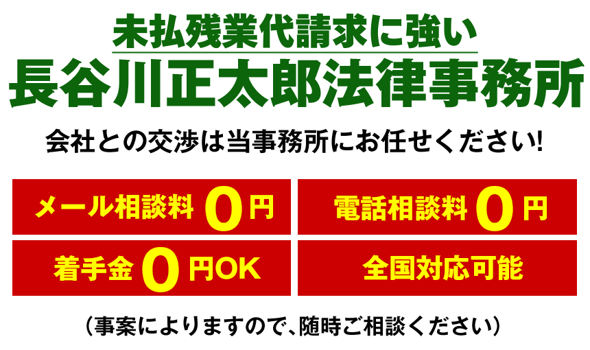 - 未払残業代特設ページはこちら(https://hasesho-law.com/LP/)