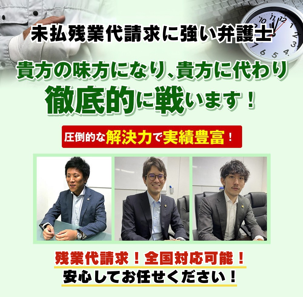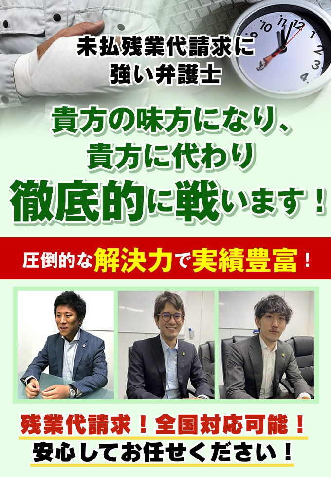 - 豊富な実績、圧倒的な解決力で、貴方の未払残業代請求・回収をお手伝いします。